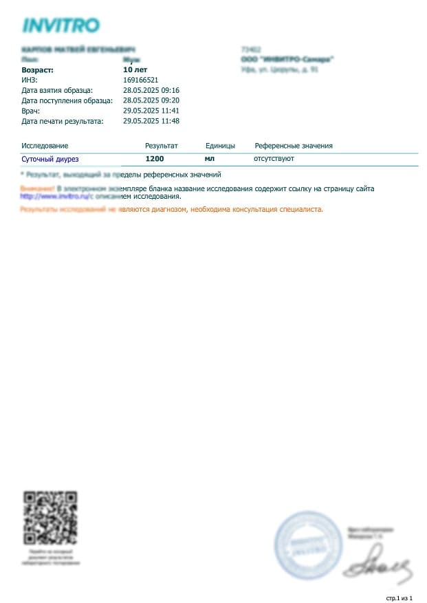 | Время на сбор и сдачу | 1 день с постоянным контролем (6 раз сбор мочи) | Не требуется личное присутствие, быстро и удобно |