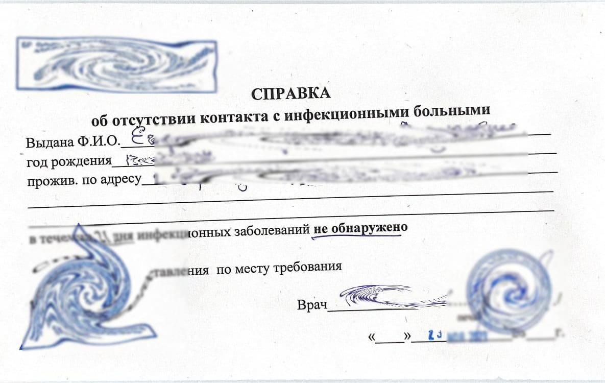Образец справки Справка об отсутствии инфекционных заболеваний